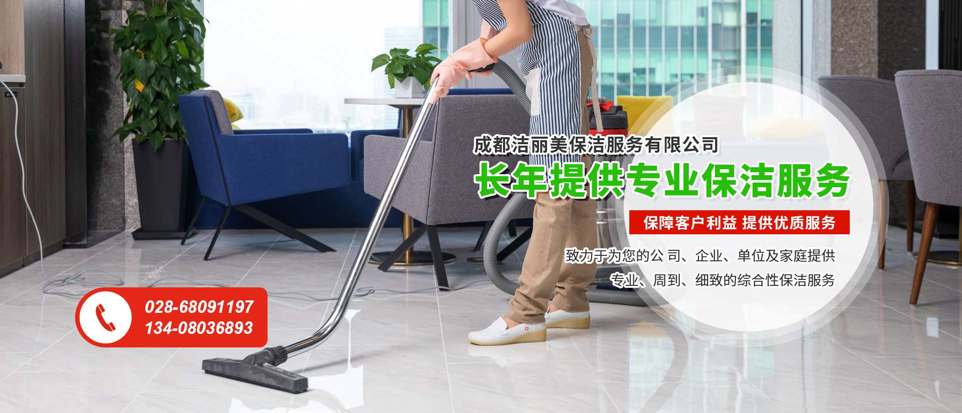 成都潔麗美保潔服務(wù)有限公司,坐落于四川省成都市成華區(qū),是一家專門從事保潔服務(wù)的公司,于2011年注冊資金500萬人民幣。主要針對大型商廈、寫字樓,機關(guān)單位,住宅小區(qū)、辦公環(huán)境、汽車賣場、大型超市、學(xué)校、醫(yī)院,銀行、工廠等場所,提供長年保潔服務(wù)的專業(yè)保潔公司。